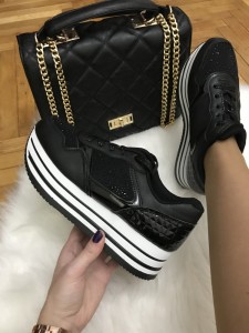 Adidasi Cu Platforma Joasa Albi Si Negri Doar 119 Lei