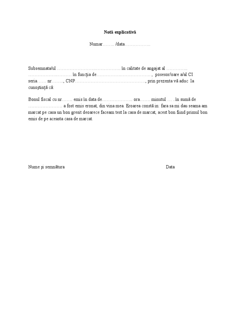 Nota Explicativa Anulare Bon Fiscal Emis Eronat