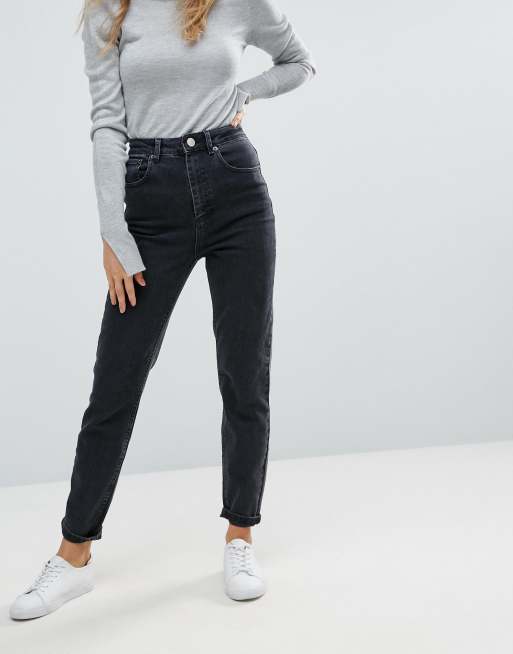 Asos Design High Rise Farleigh Slim Mom Jeans In Washed Black Asos