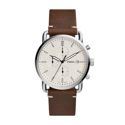 The Commuter Chronograph Brown Leather Watch Fossil Watches For