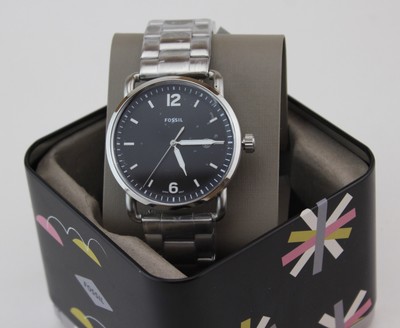 New Authentic Fossil The Commuter Silver Black Men S Fs5391 Watch