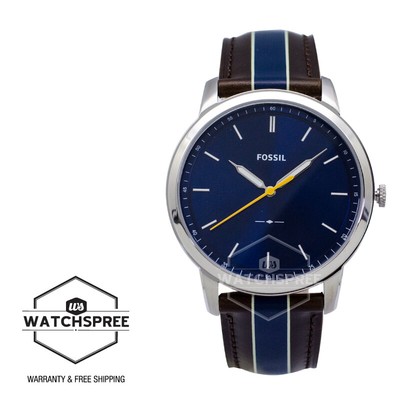 Fossil Minimalist Three Hand Striped Brown Leather Watch Fs5554