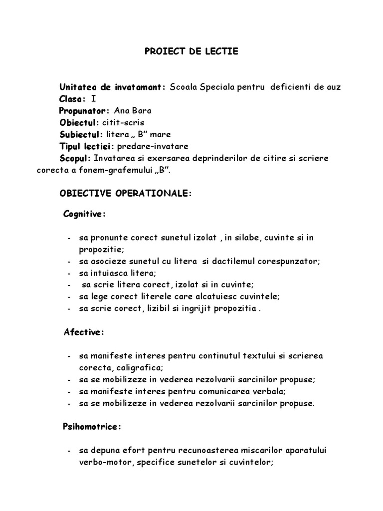 Proiect Didactic Litera B